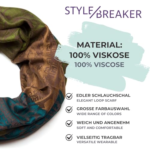 Der styleBREAKER Damen Loop Schlauchschal ist ein hervorragendes Accessoire, das Stil, Komfort und Vielseitigkeit vereint. Sein ansprechendes Design und die Nutzung hochwertiger Materialien machen ihn zu einer idealen Wahl für modebewusste Damen. Insgesamt überzeugt der Schal auf ganzer Linie und ist sowohl im Alltag als auch zu besonderen Anlässen eine tolle Ergänzung deines Outfits.