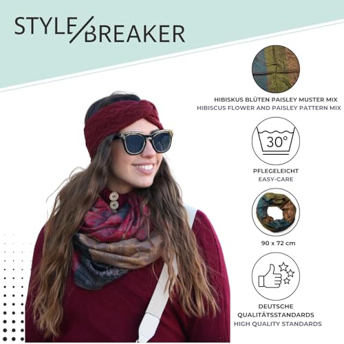 Der styleBREAKER Damen Loop Schlauchschal mit Blumen- und Paisley-Muster ist ein modisches Accessoire, das nicht nur stylisch ist, sondern auch für warme Tage ideal geeignet ist. Mit seiner vielfältigen Farbpalette und dem angenehmen Material bietet dieser Schal zahlreiche Kombinationsmöglichkeiten für jedes Outfit.