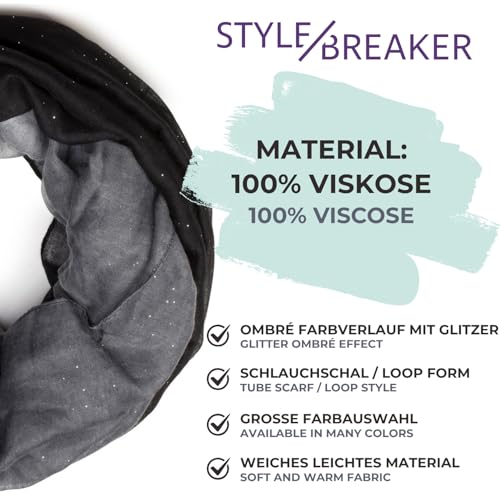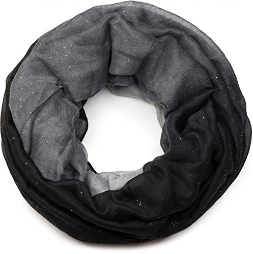 styleBREAKER Damen Loop Schlauchschal mit mehrfarbigem Farbverlauf und Glitzer, Glitzerschal, Pailletten, Schal, Tuch 01017033, Farbe:Schwarz-Grau