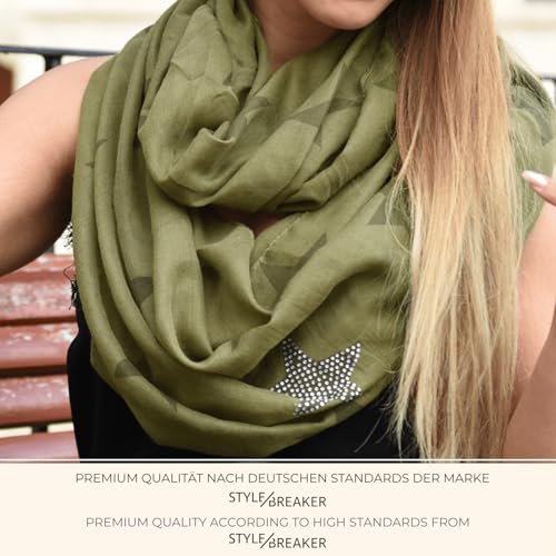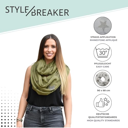 Der styleBREAKER Loop Schal mit Sterne Muster und edler Strass Applikation ist ein stilvolles und vielseitiges Accessoire für Damen, das nicht nur durch sein Design, sondern auch durch seine Funktionalität besticht. Der Schal ist ideal für verschiedene Anlässe und perfekt, um jedes Outfit aufzuwerten.