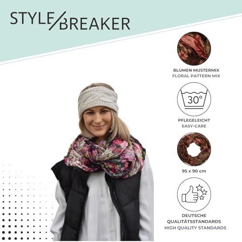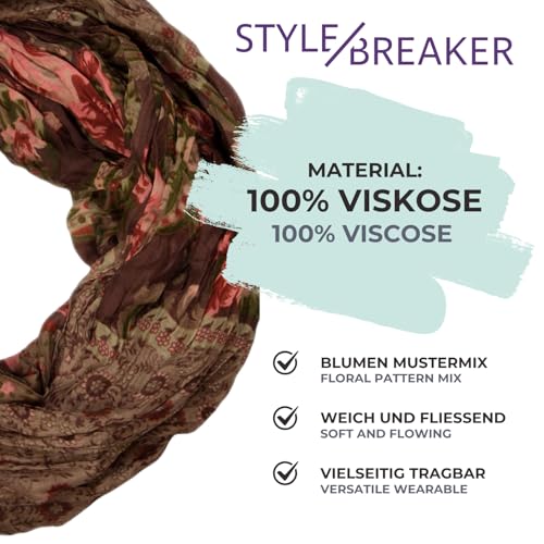 Entdecke den stilvollen styleBREAKER Loop Schal mit buntem Blumen-Mustermix. Aus 100% Viskose gefertigt, bietet er hohen Tragekomfort und vielfältige Tragemöglichkeiten. Ideal, um deinen Look aufzupeppen und deinen individuellen Stil zu unterstreichen!