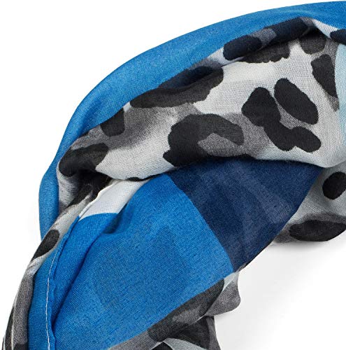 styleBREAKER Damen Loop Schal mit Leoparden Animal Print Muster und Color Blocking Farbflächen, Schlauchschal, Tuch 01016182, Farbe:Blau-Hellblau
