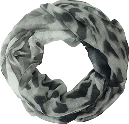 fashionchimp Loop Schlauchschal für Damen mit Leoparden-Print Muster, Baumwolle und Viskose, XXL Schal (Grau-Schwarz)