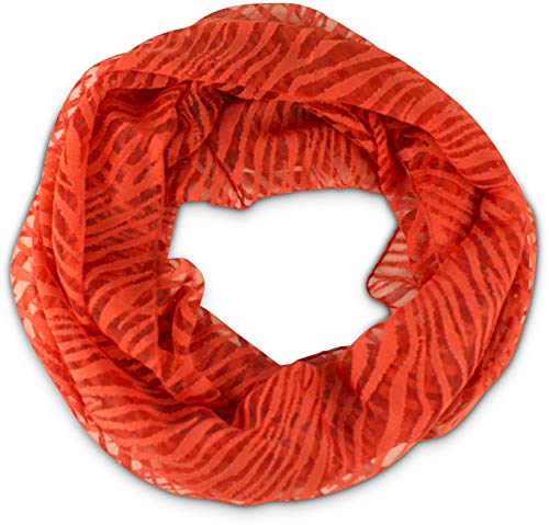 fashionchimp Loop Sommer-Schlauchschal für Damen mit Ausbrenn-Muster, Baumwolle und Polyester, leichter XXL Schal (Rot-Streifen)