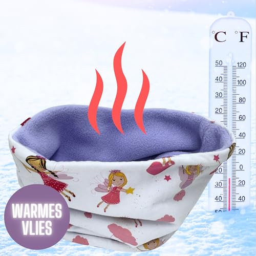 HECKBO Kinder Beanie Wintermütze & Schal Set – Fee-Design – Für 2-6 Jahre – Wärme durch Fleece – Unisex Loop-Schal – Maschinenwaschbar – Baumwolle, Einheitsgröße