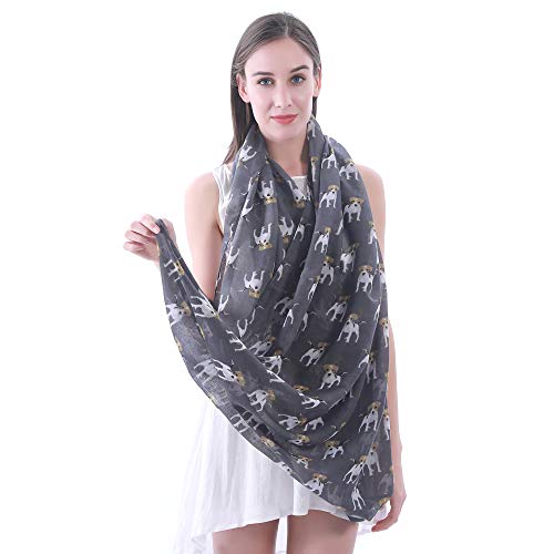 Lina & Lily Damen Loop Schal Schlauchschal mit Jack Russell Terrier Hund (Dunkelgrau)
