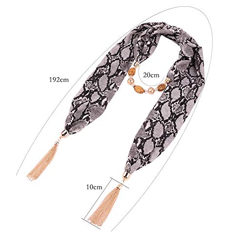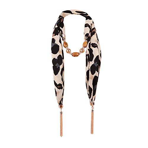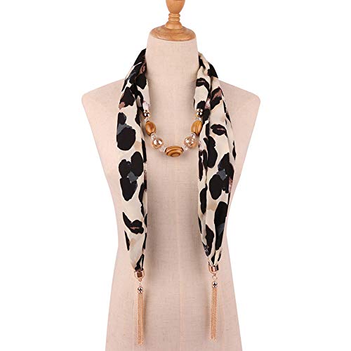 MoreChioce Halstuch mit Schmuck,Damen Anhänger Schal Fransenschal Halskette Schal mit Gold Quaste Anhänger Halsschmuck Rundschal Loopschal,Groß Schwarz Leopard