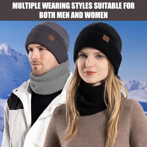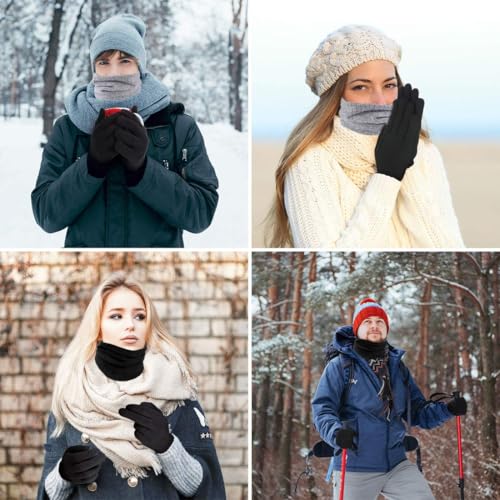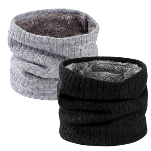 Schmaler Damen-Schal Loop, 2 Stück Fleece Halswärmer Winddicht Thermo Gestrickt Schlauchschal für Herren Damen Dicker Winter Kaltes Wetter Gestrickter Kreis Schal für Outdoor Sport