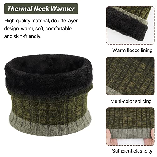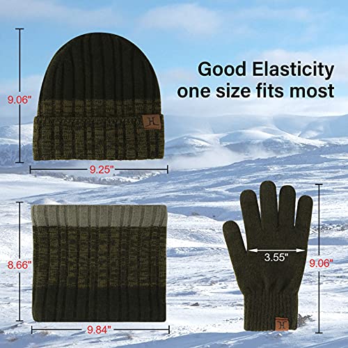 Warm Weiches Material: Hergestellt aus 41% Acryl, 33% Nylon und 26% Polyester, sind unsere Strickmütze und Schal mit Doppelschichten gestaltet, das Fleecefutter ist sehr warm und bequem, nah an der Haut und weich zu tragen. Bei kaltem Wetter können Sie zusätzliche Wärme genießen., Unisex & One Size Fits All: Das slouchy Beanie Hut Set verwendet dehnbare Materialien, so dass sich Hut, Schal und Handschuhe an verschiedene Kopf-, Hals- und Handgrößen anpassen können. Sie sind für die meisten Frauen und Männer geeignet und leicht zu tragen oder auszuziehen., Warm Knit Touchscreen Handschuhe & Halsschal: Die Strickhandschuhe des Sets nehmen Touchscreen-Design an, Sie können die Smartphones, iPads, Auto-Touchscreen und andere Touchscreen-Geräte normalerweise verwenden, ohne die Handschuhe auszuziehen. Der Nackenwärmer kann Ihren Hals vor Wind und Schnee schützen., Klassischer Modestil: Unsere Strickmütze aus mischgarnfarbener Mütze, Schal und Handschuhe für Herren Damen sind klassisch im Stil, schön in mehrfarbiger Kombination und leicht mit allen Arten von Winterkleidung wie Jacken, Pullover, Mänteln zu kombinieren., Breite Anwendung: Wintermütze, Schal und Handschuhe Set für Frauen und Männer beim Skifahren, Snowboarden, Skaten, Camping, Wandern oder jedem Outdoor-Wintersport und täglichen Gebrauch. Es ist auch eine gute Wahl als süßes Geschenk zum Geburtstag, Weihnachten oder Neujahr.