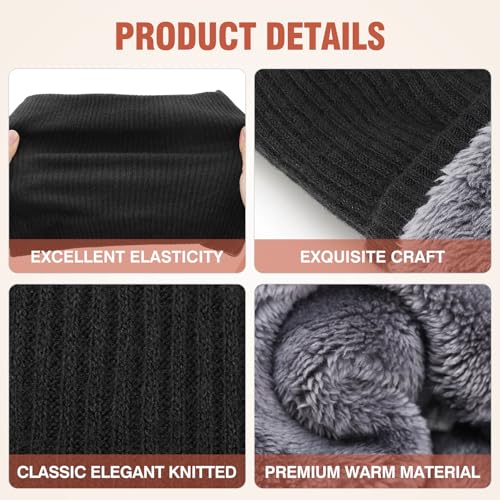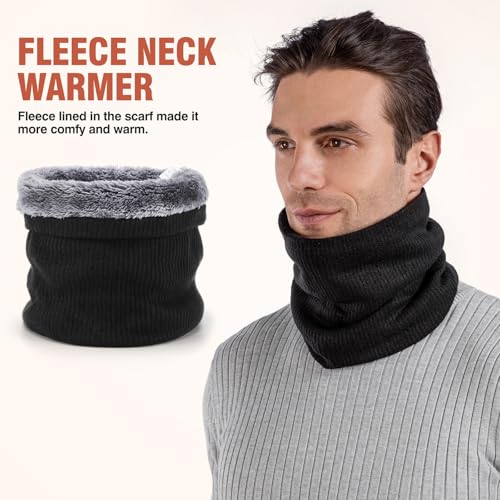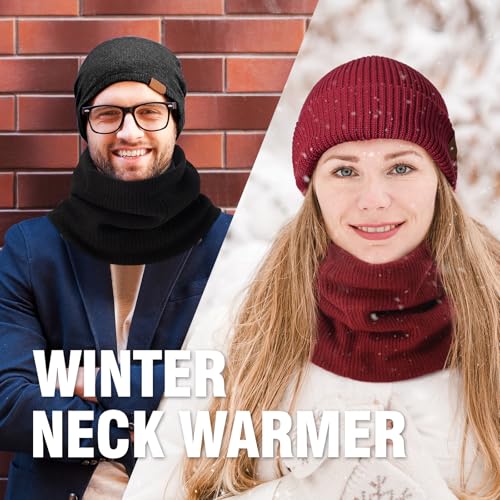 BARFULKER Winter Halsschlauch Herren Damen Warm Gefüttert Strickschal – Schlauchschal Halswärmer Gesichtsschal Fleece Loop Schal Winddichte Gesichtsmaske,Schwarz