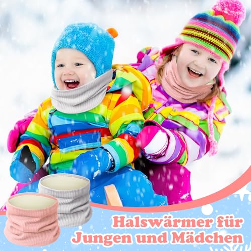 Kiiwah 2 Stück Loop Schals Kinder Baumwolle, Herbst Winter Schlauchschal, Halstuch Nackenwärmer mit Fleece für Baby Jungen Mädchen