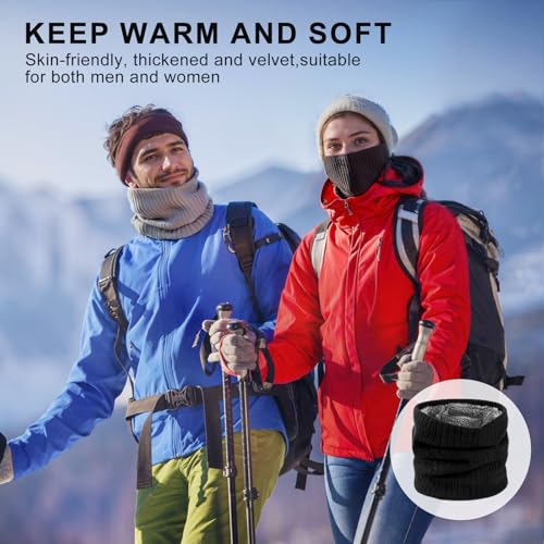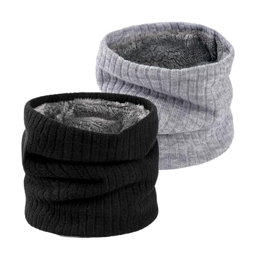 SEFIRST 2 Stück Winter Halsschlauch Herren Ski, Schlauchschal Herren, Loop Schal Halswärmer Nackenwärmer Männer Gesichtsschal Damen, Winddichte Thermo, Fleece Rundschal für Fahrrad Joggen,Schwarz Grau