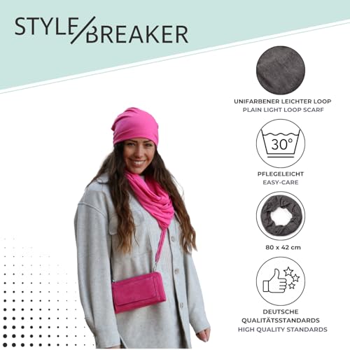 Der stilvolle, einfarbige Jersey Loop Schal von styleBREAKER bietet dir leichten Komfort und Vielseitigkeit. Ideal kombinierbar mit deinem Look, lässt er sich mehrfach um den Hals tragen und ist perfekt für jede Jahreszeit.