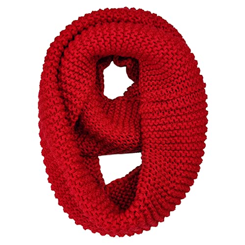GB-W-S-J1 Damen/Herren, dicker Winter-Strick, Unendlichkeits-Schal, grob, warm, gestrickt, für kaltes Wetter, rot, One size