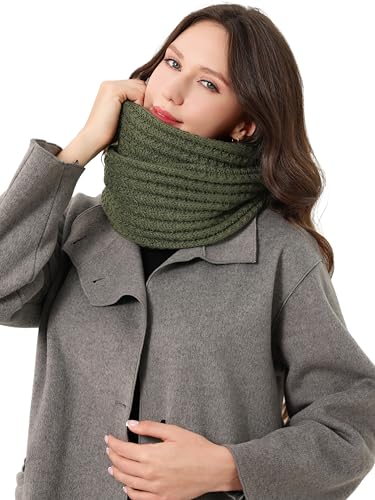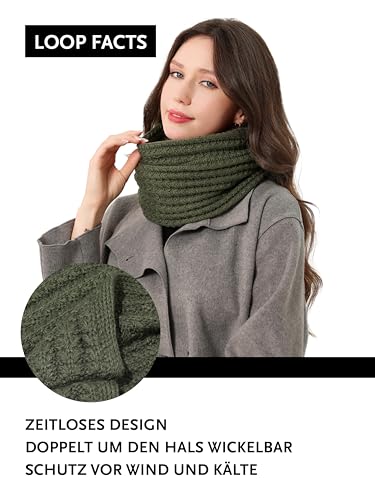 DonDon Schal Damen Winter Winterschal Strickschal Loop Schal Schlauchschal – Olivgrün