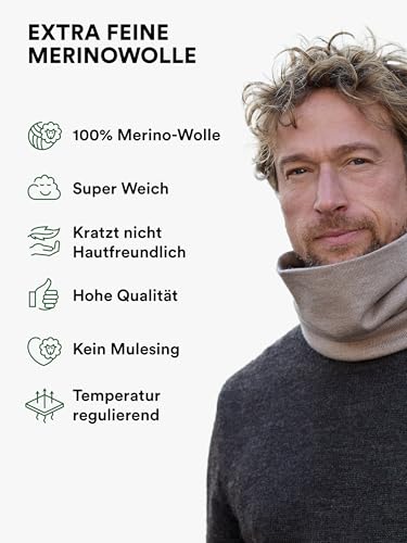 | Features | Zweilagig Nahtlos – Der Rundschal ist ohne Naht gestrickt und dadurch besonders angenehm zu tragen. Keine kratzigen Nähte, Merino Wolle wärmt bei Kälte und kühlt bei Hitze, super geeignet zum Motorrad- oder Ski-fahren, Vielseitig Verwendbar – Das Multifunktionstuch kann als Rundschal, Tuch, Schal, Mütze oder Stirnband getragen werden, Allround Naturprodukt – Kratzt nicht, riecht nicht, windabweisend, temperaturausgleichend, UV-Strahlen abweisend, 100% extra feine Merino-Wolle mit STANDARD 100 by OEKO-TEX Zertifikat; Hochwertige Qualität – Fair gehandelt und hergestellt in Italien |