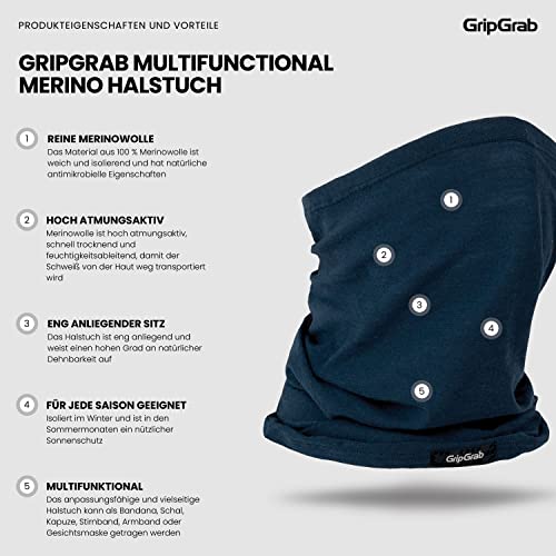 GripGrab Schlauchschal Merinowolle Fahrrad Merino Schlauchtuch Radsport Halstuch Loop Schal Halswärmer Radfahren Wolle