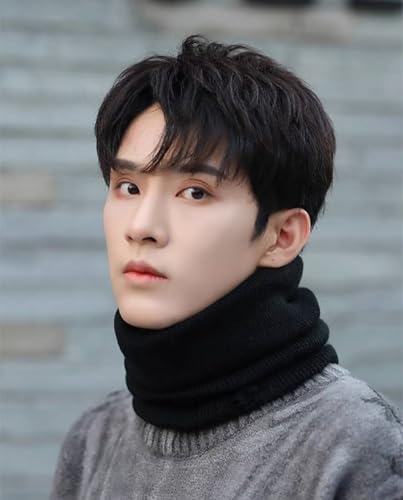 Hjkiopc Strick Schlauchschal Strickschal Winterschal Feinstrick Loop Schal für Damen und Herren (Schwarz-1)