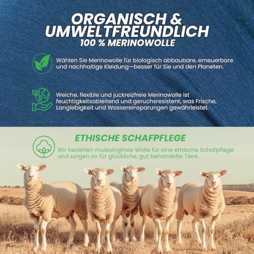 - Material: 100% Merinowolle für hervorragende Atmungsaktivität und Thermoregulation