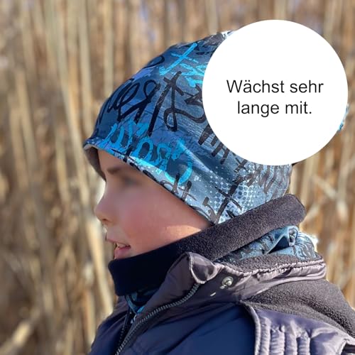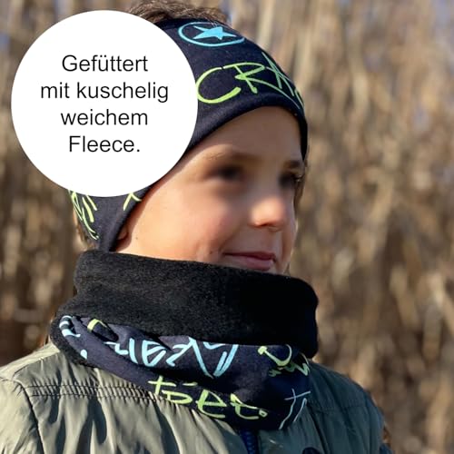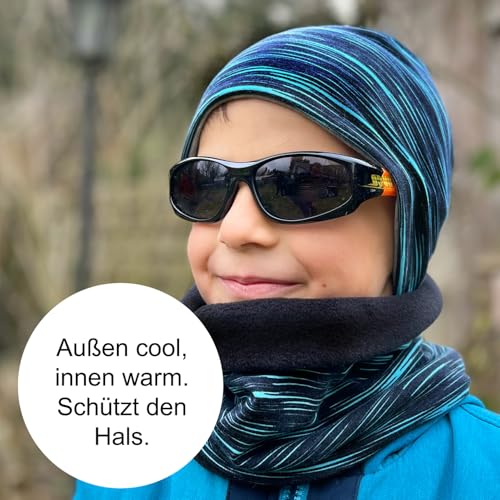 Wollhuhn Mädchen/Damen/Jungen Warmer Schlupfschal/Halstuch Innen Fleece Gefüttert Viele Motive Winter Übergangszeiten (Lines Petrol/Türkis)