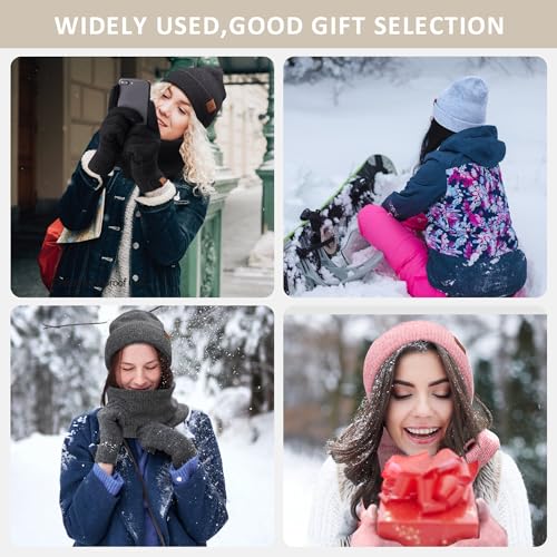 ZASFOU Damen Winter Beanie Mütze Schal Touchscreen Handschuhe Set Warme Wintermütze Loop Schal Schlauchschal Winterhandschuhe Weihnachten Geschenk für Frauen,Helles Khaki