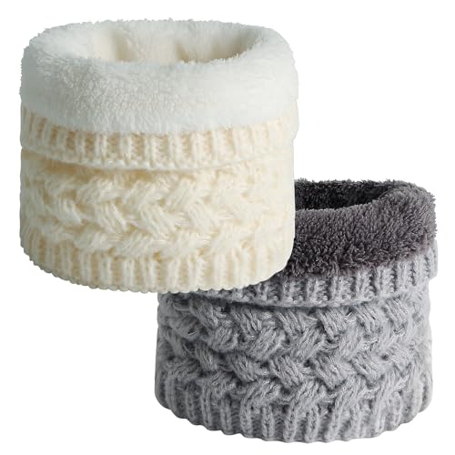 CESHMD 2 Stück Loop Schal Damen Winter, Fleece Halswärmer Schal Damen Winter, Gestrickt Schlauchschal für Outdoor Sport für Damen Herren Kinder