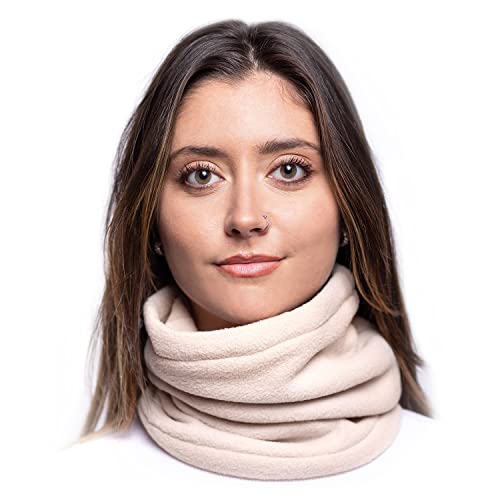 Karl Loven Damen Loop Schal Hals wärmer Herren Schnalle Winter Fleece Futter Unisex warme Hut Maske – Sport Ski Motorrad Fahrrad Snowboard Wandern Beige