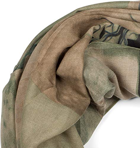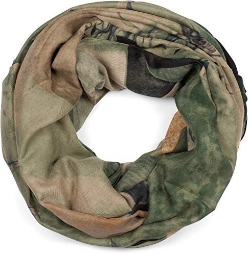 styleBREAKER Damen Loop Schal mit Hirsch Print und geometrischer Einteilung, Schlauchschal mehrfarbig, Tuch 01017131, Farbe:Dunkelgrün-Beige