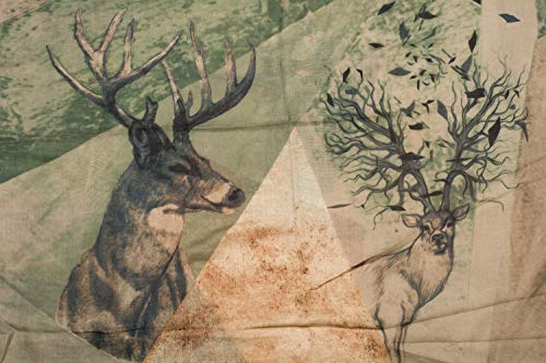 • Edler Schlauchschal mit Hirsch Motiv Print und geometrisch eingeteilten Flächen