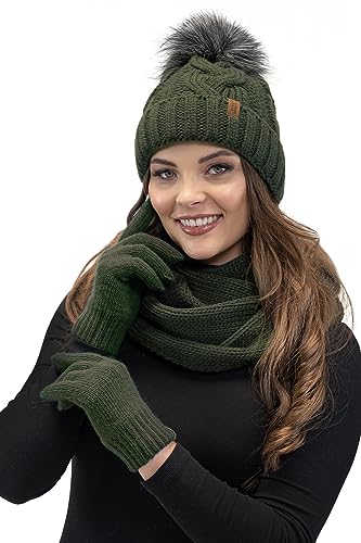 VIVISENCE Damen Winter Loop Schal Aus Modischer Gemütlich Wärmendem Garn Mit Doppelt Um Den Hals Tragbar Kalte Wintertage Frauen Elegante Und Sportliche Outfits Winter Herbst 7103, Grün,Einheitsgröße
