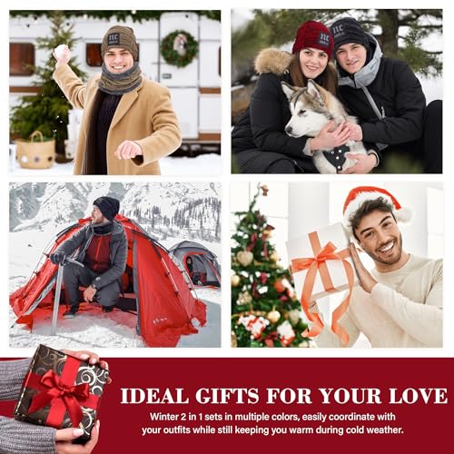 Bequemer Laden Herren Winter Warm Beanie Mütze Loop Schal Set Thermo Wintermütze Strickmütze Schlauchschal Halswärmer mit Fleece Gefütterte Geschenk Männer Weihnachten, Z Rotwein, Einheitsgröße