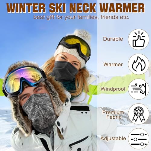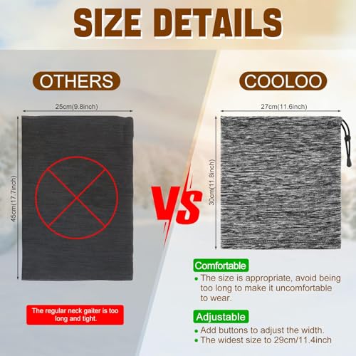 COOLOO 2 Stück Herren Damen Schal, Winter Fleece Winddicht Halstuch Einstellbar Schlauchschal Multifunktionstuch Loop Schal Skimaske Für Laufen Skifahren Radfahren(Schwarz+Grau)