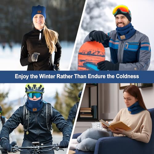 Winter Schlauchschal Herren Geschenke für Männer,Schal Halstuch Ski,Halswärmer Motorrad,Weihnachtsgeschenke für Männer Gefüttert Weichem Nackenwärmer,Dick Fleece Loop Schal Winddichte maske Blau