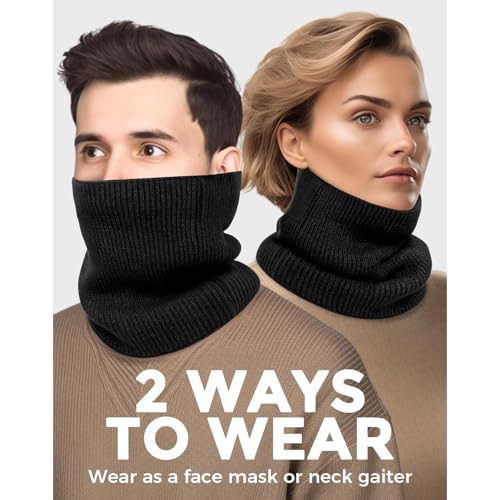 | Features | 【Halten Sie sich im Winter für Sie warm】 Das Tragen dieses schlauchschal kann Ihrem Hals langanhaltende Wärme bringen, sodass Sie sich im kalten Winter warm fühlen können. Sie sind perfekt für Herbst- und Winterreisen, Radfahren, Skifahren, Wandern, Laufen und andere Outdoor-Aktivitäten und ein Muss, um Hals und Gesicht warm zu halten! Sie können es auch tragen, während Sie arbeiten, lernen und sich ausruhen, um einen ganzen Tag lang Komfort zu genießen!, 【Super dehnbare Größe passt den meisten Menschen】 Die halstuch herren Aufgrund der Vorteile von Maschenware hat es eine sehr gute Elastizität und passt sich dem Halsumfang der meisten Menschen an, sodass Sie sich beim Tragen nicht erwürgt fühlen und es auch umschließen kann Hals und schütze ihn vor Wind und Kälte!, 【Vielseitigkeit】Schlauchschal herren Winter mit gemütlichem Überzieh-Design, ziehen Sie sie herunter und tragen Sie sie als Halsmanschette oder tragen Sie sie über Mund und Nase als Halsbedeckungs-Gesichtsmaske. Unsere halswärmer sind wendbar, klassisches Fleece auf der einen Seite und vertikale Streifen auf der anderen Seite für verschiedene Stile, 【Maschinen- und handwaschbar】 Dieser warme scarf unterstützt Handwäsche und Maschinenwäsche und knittert nach dem Waschen und Trocknen nicht leicht und kann dennoch eine hervorragende Rolle beim Warmhalten spielen. Die klassische und vielseitige Farbe Schwarz und Grau ist für alle Männer und Frauen geeignet, für den täglichen Gebrauch geeignet, sorgen Sie sich nicht um Farbverlust, 【Multi-Anlass】 Der winter loop schal ist perfekt für jede Zeit. Skifahren, Snowboarden, Schneeschaufeln, Reiten, Quadfahren, Jagen, Rodeln, Rodeln, Laufen, Angeln, Camping, Pendeln, Lagerarbeit und andere Outdoor-Aktivitäten. Auch ein tolles Weihnachtsgeschenk für Ihre Freunde, Liebhaber, Eltern im kalten Winter |