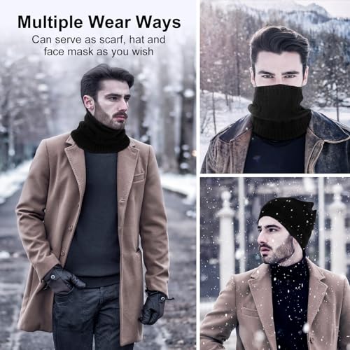 OOPOR Loop Schal Herren Winter Schlauchschal – Verdickte Fleece Futter Halswärmer Thermo Halsschlauch Strick Nackenwärmer Warm Halstuch für Outdoor Motorrad Fahrrad Ski Unisex Winterschal