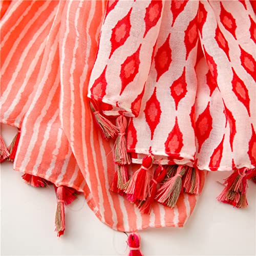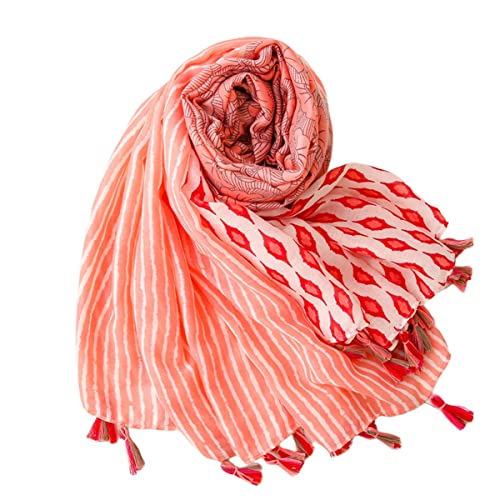 FAIRYGATE Schal für Damen Mädchen roter Schal mit Streifen Hochwertiger Halstuch Umschlagtuch weicher Schlauchschal für Sommer Herbst und Winter Tuch XXL Tücher 67009