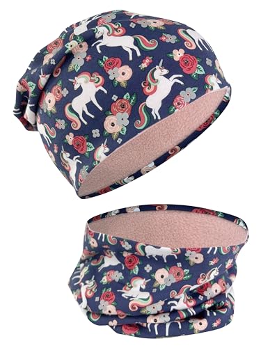 HECKBO Winter Einhorn Mütze und Loop Schal Set