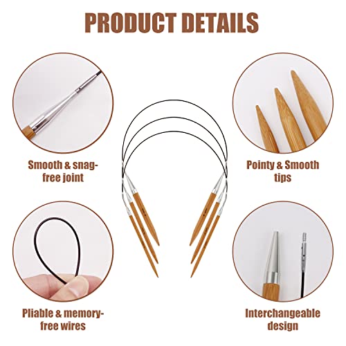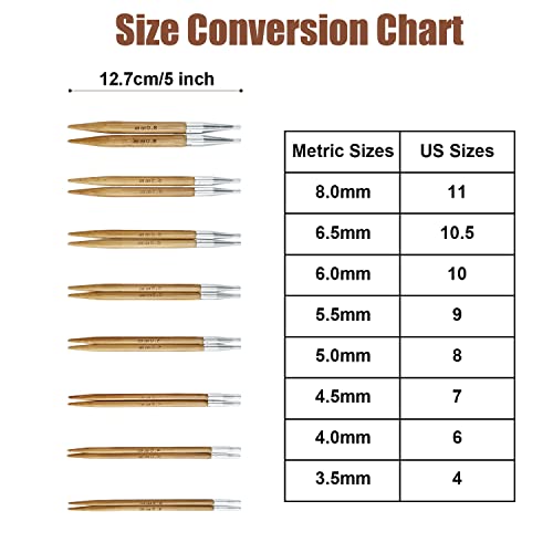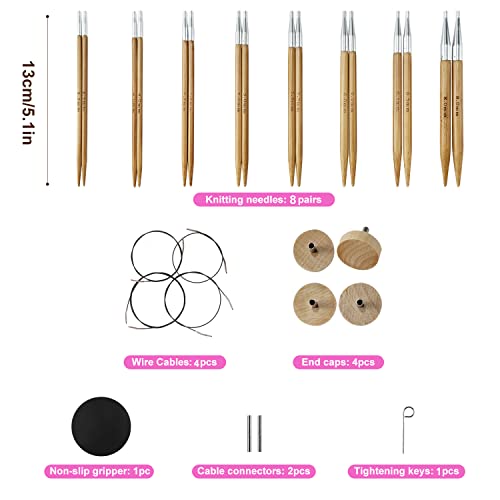 Knitting Youth Rundstricknadel-Set, Glatter Bambus, Austauschbare tunisian für Pullover, Set Mit Etui und Zubehör, 8 Paar Rundstricknadeln, Größen von 3.5 mm bis 8 mm