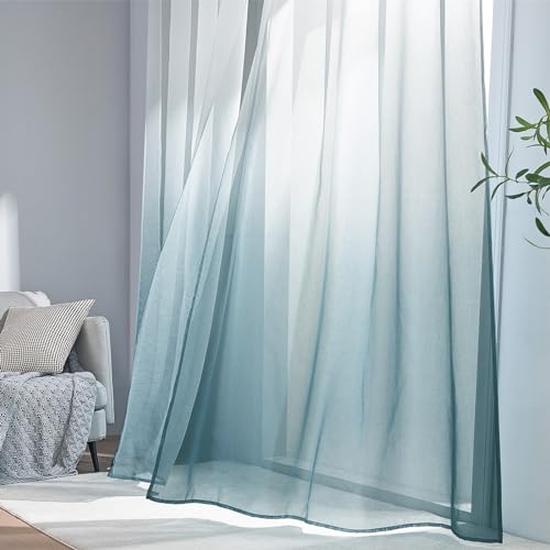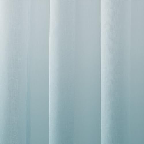 MRTREES Voile Gardinen Farbverlauf Leinenoptik Transparent Vorhang Kurz Tüllvorhang mit Ösen in Graublau Weiß Verlauf 145×140cm (H×B) Modern für Kinderzimmer Wohnzimmer Schlafzimmer 2er