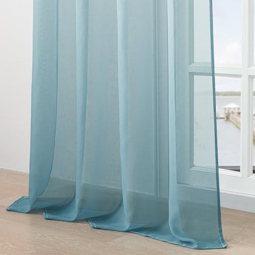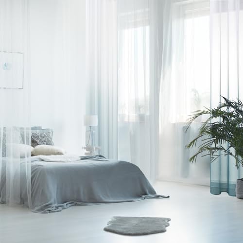 MRTREES Voile Gardinen Graublau Tüllvorhang 145×140 cm