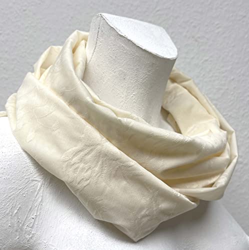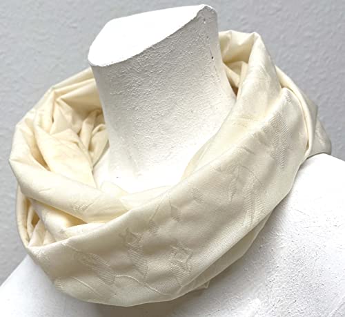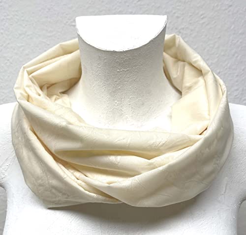 Landhuis Handmade Luxus-Loop Schal Mode Halstuch für Damen & Herren Puristisch Elegant Schlauch-Schal Büro Freizeit Abendgarderobe Baumwolle Leicht Uni Hell Champagner Creme-Weiß Dezent Muster Sommer