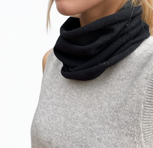 Prettystern Damen Herren Kaschmir Loop Schal Cashmere Schlauchschal feinstrick Schal Halstuch Winter schwarz