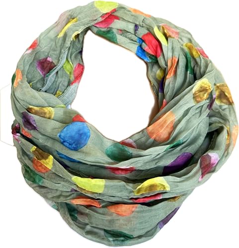 | Features | Leichter Sommer Loop mit Farbverläufen Dots Motiv aus Seide, Sehr angesagt und stylisch, passt zu vielen Outfits, Angenehmes Tragegefühl und gute Qualität, Maße Loop Schal ca. 165 x 50cm |