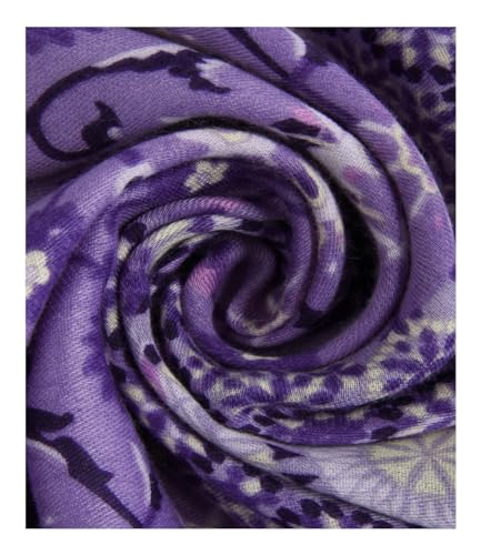 Das auffällige lila und das ansprechende Muster-Mix machen diesen Schal zu einem echten Hingucker. Er lässt sich vielseitig kombinieren und passt sowohl zu Freizeit- als auch zu eleganteren Outfits. Die Farbwahl ist modern und zeitlos zugleich.