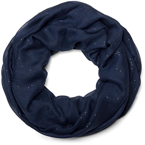 styleBREAKER edler einfarbiger glitzernder Loop Schal, Unifarben, Schlauchschal, Damen 01018090, Farbe:Midnight-Blue