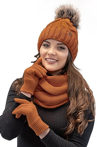 VIVISENCE Damen Winter Loop Schal Aus Modischer Gemütlich Wärmendem Garn Mit Doppelt Um Den Hals Tragbar Kalte Wintertage Frauen Elegante Und Sportliche Outfits Winter Herbst, Orange,Einheitsgröße